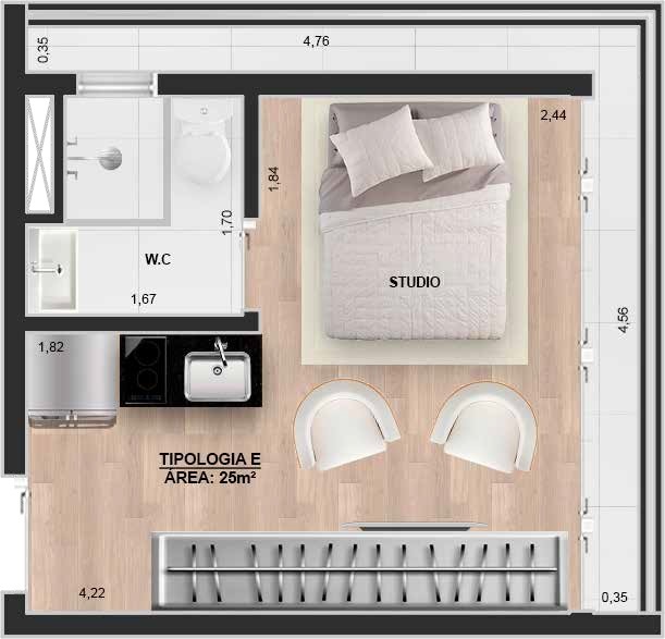 Área Útil25,00m²
